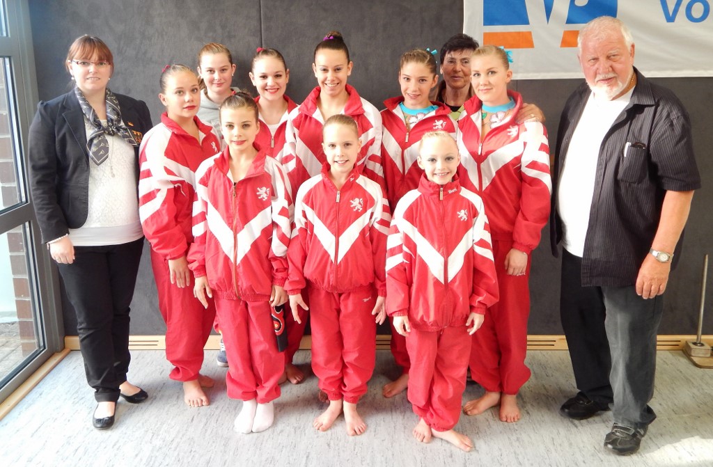 DM Jugend Teilnehemer 2014Im größten Teilnehmerfeld präsentierte sich das Nieder-Liebersbacher Trio unter 28 Damengruppen mit ihrer Balance-Übung in Top Form.  Sicher ausgeführte Elemente und eine sehr schöne, ausdruckstarke Choreographie werteten die Kampfrichter mit 26,050 Punkten. Das Treppchen wurde hier gerade mal um 2 Zehntel verpasst aber in Anbetracht des starken Starterfeldes bedeutete dies einen großartiger vierter Platz.