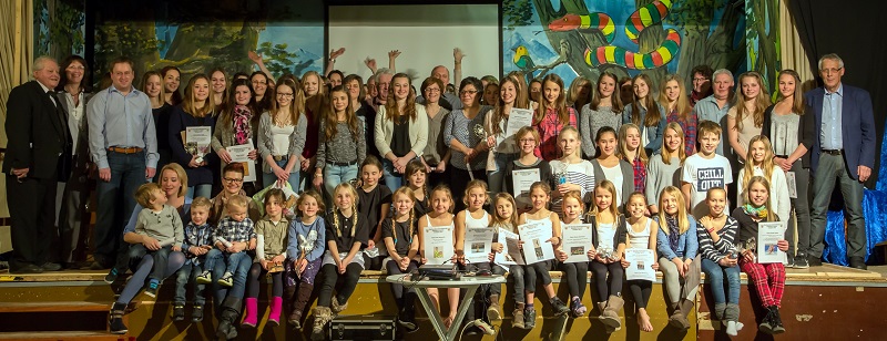 Nach dem gemeinsamen Abendessen umrahmte ein buntes Programm die Ehrungen der erfolgreichen Sportler der abgelaufenen Saison. Großen Beifall gab für die „Kleinsten“ aus der Breitensportgruppe die gekonnt und sehr charmant ihren Tanz vortrugen. Ein Jahresrückblick in Bildern zeigte u. a. wie viel Spaß ein Trainingslager machen kann und beim Bingo-Spiel raufte sich mancher die Haare, weil die ihm fehlende Zahl nicht gezogen wurde. Ein Kutscherspiel sorgte genauso für Lacherfolge wie eine Wasser-Challenge und beim 12-Monatsspiel sicherten sich Trainer und Sportler monatsweise „gesunde Leckereien“ von den Eltern. Die „Senioren“ Sportler präsentierten einen Tanz mit „vertauschten Beinen“ und, dass eine Tanzperformance zur Musik von Michael Jackson keine Frage des Alters ist, bestätigten vier Herren in den besten Jahren aus dem Abteilungsvorstand und setzten der gelungenen Veranstaltung einen würdigen Schlusspunkt.